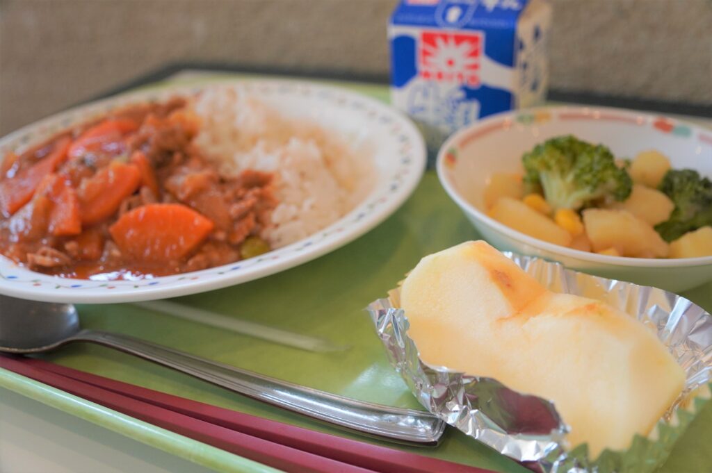 給食のりんご 2025/10/17 ある日の給食のデザートはりんご。 食堂の入り口には、その日のりんごについての紹介がありました。 新鮮なりんご、みずみずしくておいしいね! 前へ 一覧はこちら next