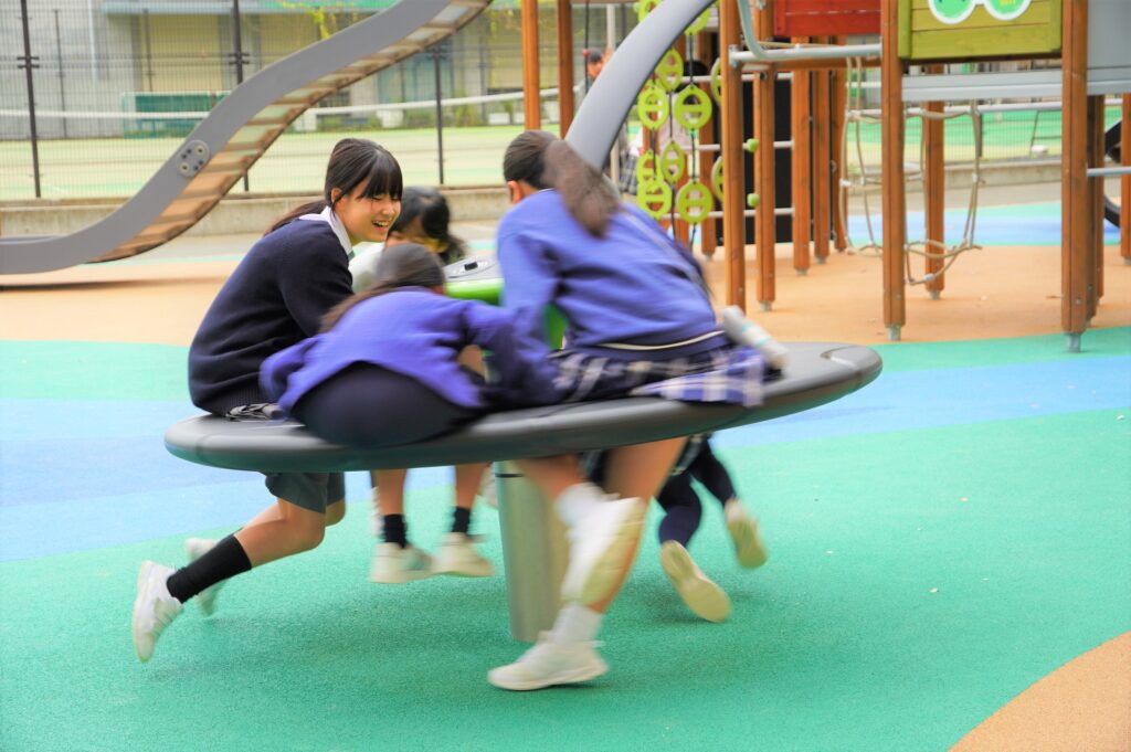 大人気遊具の「ぐるぐるドーナツ」も高学年ならではの、猛スピード!