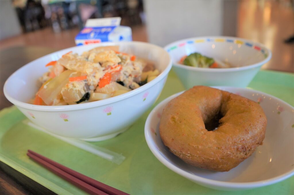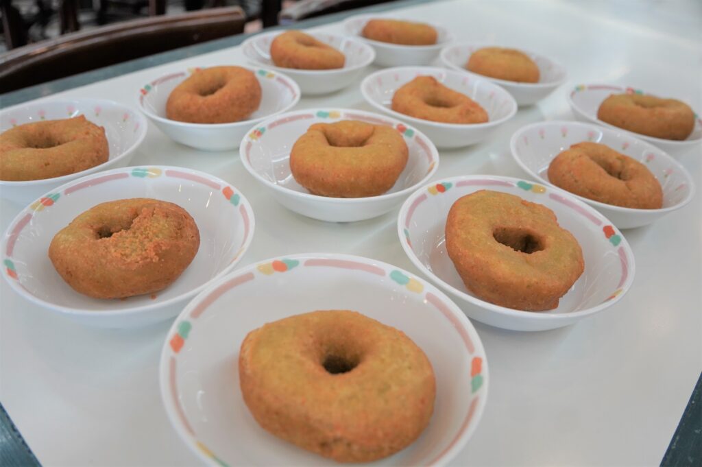 ある日の給食のデザートは「明日葉ドーナッツ」
