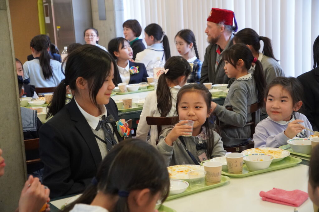 6年生を迎えて、1~6年生で一つのテーブルを囲んでのランチ。