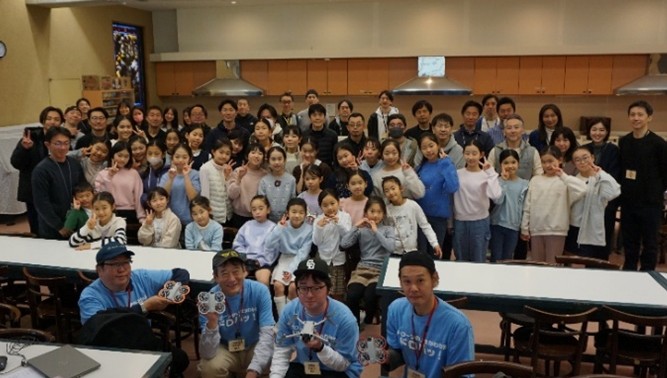 第二部では、体験教室としてドローン操縦と簡単なプログラミングに挑戦しました。ドローン・機材の準備や操縦の講習、体験会の進行については、高円寺工房より一等無人航空機操縦士の方々にご協力いただきました。