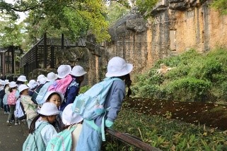 ライオンの唸り声やオランウータンがロープを軽快に渡る姿に、歓声を上げる子どもたち。動物の歌を歌いながら歩く様子もありました。おいしいお弁当からパワーをもらい、最後まで元気に坂道を歩き続けた子どもたちの姿に、成長を感じました。