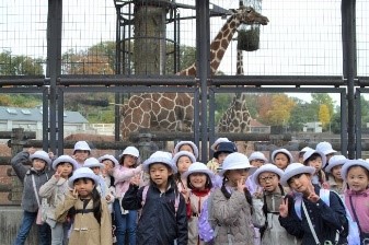 1・2年生の秋の遠足では、多摩動物公園を訪れました。紅葉が始まった美しい秋の自然を楽しみながら、電車やモノレールを乗り継いで向かうと、広い園内でのびのびと過ごす動物たちが待っていました。