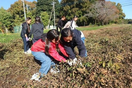 2日目は鯉淵学園農業栄養専門学校へ行き、農業体験をさせていただきました。脱穀機や手回しの唐箕(とうみ)の体験をしたり、専門の機械でお米を選別する様子を見学したりしました。収穫した稲が、自分たちが普段目にしているお米になるまでの過程を見ることができ、とても勉強になりました。もう一つのプログラムは、畑仕事。落花生の収穫チームと、玉ねぎの苗の植え付けチームに分かれての活動になりました。農業体験を行うことで、農家の方の苦労を感じ、食べ物に対するありがたみの気持ちが増したことでしょう。スタディツアーの学びを糧に、これからの生活の中で「食」を大切にする気持ちが高まっていくことを願っています。